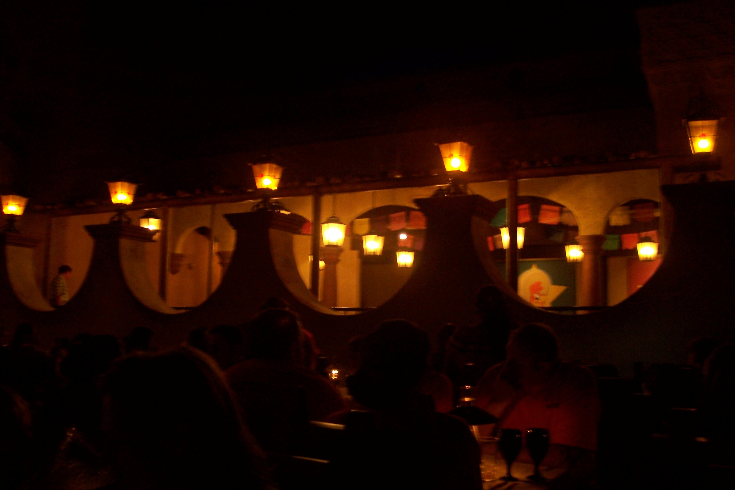 The Mexico Pavilion is such a transformation from the outside to the inside. Once you walk in you’re in a Mexican marketplace at night. I love the theming of this pavilion the most. The Mayan temple in the background still fascinates me. We were seated almost by the “waterfront” and had a great view. Every so often you would see a volcano in the background “erupt.” San Angel Inn is just a great dining experience. You really feel as if you’re dining outside in the Mexican nighttime.