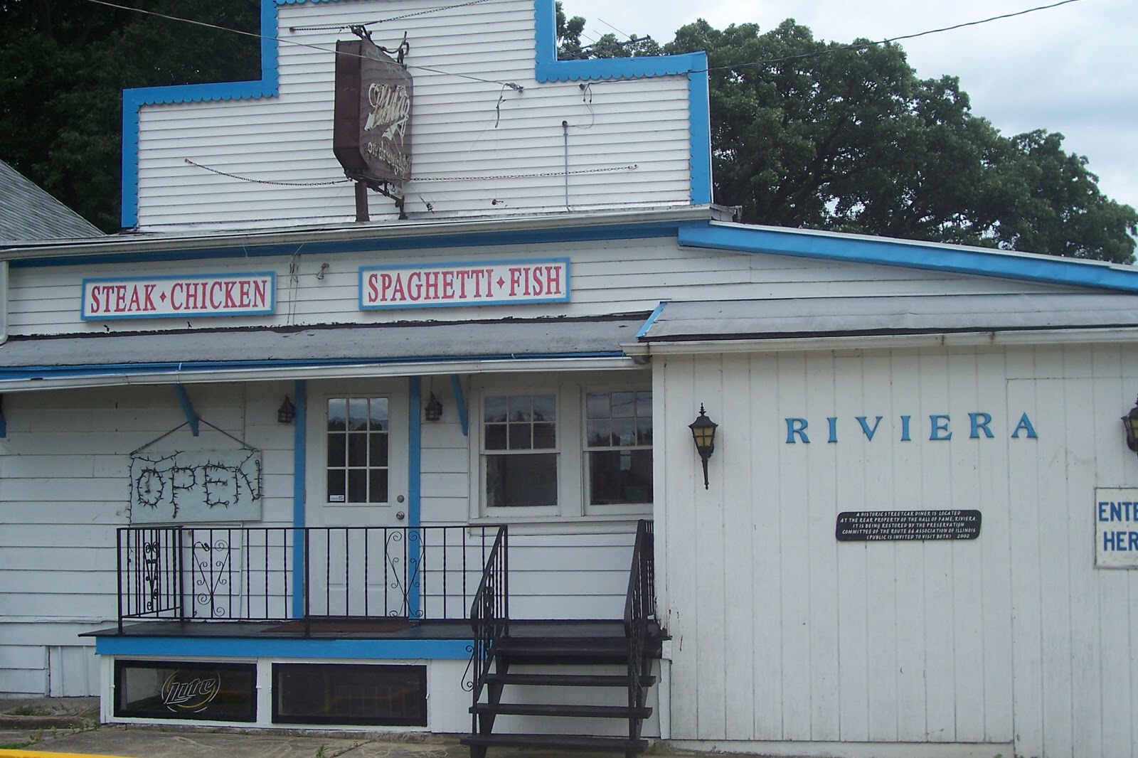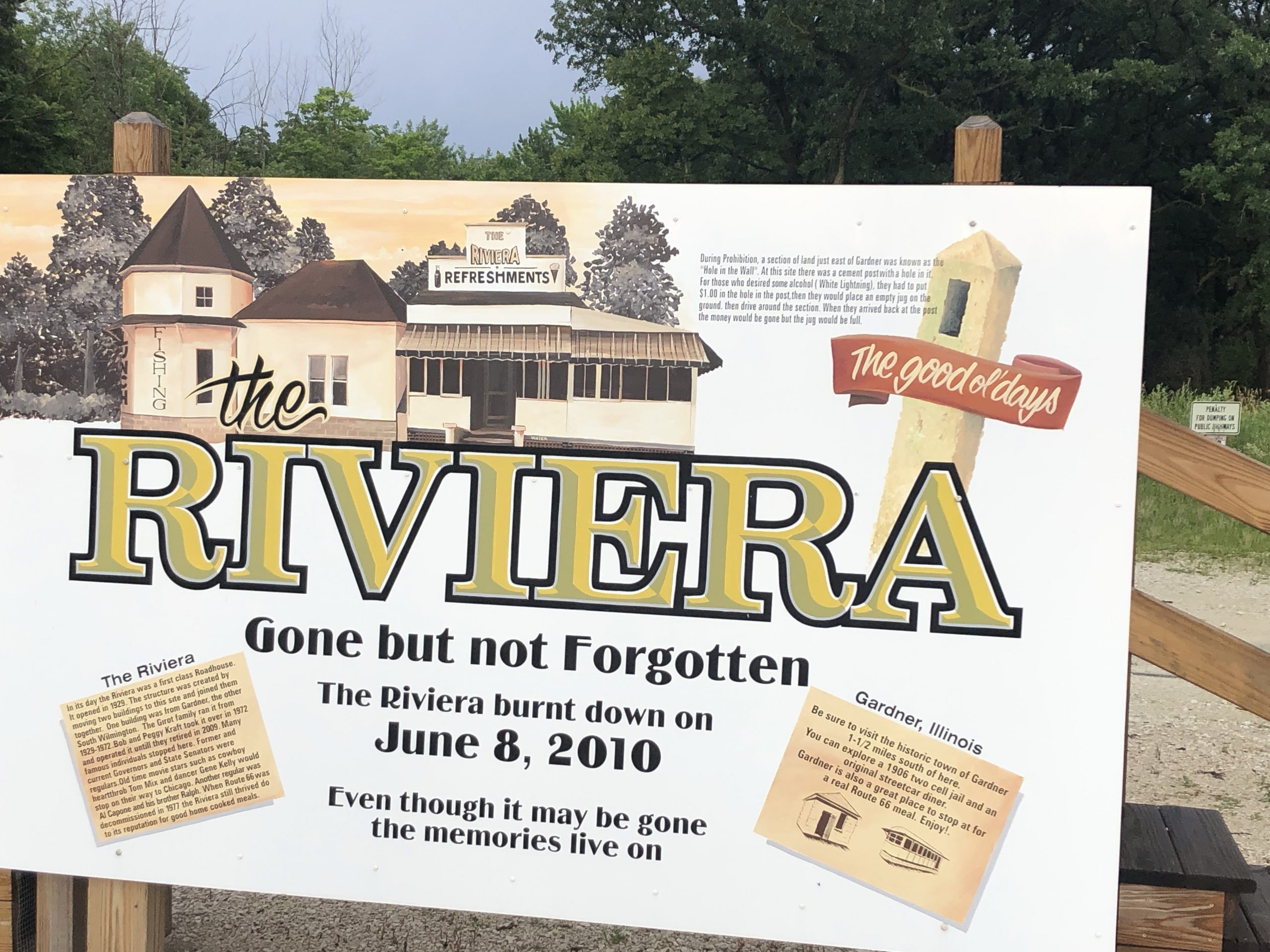 The Riviera Roadhouse is one of those places just dripping in history. Al Capone hid liquor here and film stars such as Tom Mix and Gene Kelly ate at the Roadhouse.